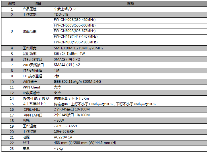 这是一款专为专网用户车载上架而设计的CPE,具备高上行功率(4W),支持虚拟SIM卡、支持DT路测软件数据采集、支持VPN、支持后路由功能(需要基站支持)、支持AC220V供电、支持高增益WIFI等显著特点。